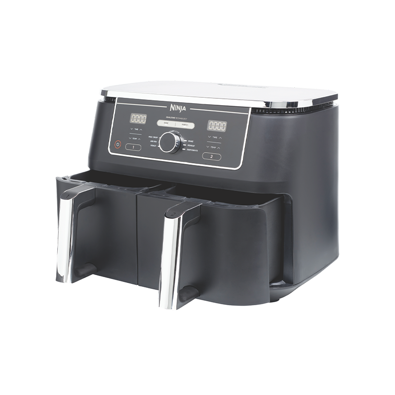 سرخ کن af 400 نینجا دارای دو مخزن یا همان دو سبد پخت جداگانه است و میتوان به صورت همزمان، مواد غذایی مختلف را داخل دستگاه گذاشت. اگر زمان پخت محتویات هر مخزن متفاوت باشد، میتوان آن را به طور مجزا تنظیم کرد. در صورت نیاز به شستوشو، میتوانید مخزنها را کامل جدا کنید و شستوشو دهید. هرکدام از مخزنهای سرخکن af400، 4.75 لیتر گنجایش دارند و به طور کلی، این محصول 9.5 لیتر ظرفیت پخت مواد غذایی را دارد. قابلیت پخت بدون روغن سرخ کن af400 برای طرفداران غذای سالم بسیار مفید است. به عنوان مثال، میتوانید سیبزمینی را تا 80 درصد چربی کمتر سرخ کنید؛ بدون اینکه طعم و مزۀ آن تغییر کند.