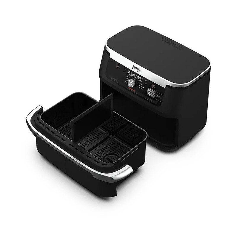 استفاده از یک مخزن عریض و یکدست 10.4 لیتری در سرخ کن نینجا af500 به معنای پخت انواع غذاها در حجم بسیار بالایی بوده که نیاز روزمره یک خانواده 8-9 نفره را به سادگی برطرف میکند. البته این مخزن به کمک یک جداکننده قابلیت تقسیم شدن را داشته تا بتوانید در هر بخش یک برنامه غذایی متفاوت را اجرا کنید. مانند دیگر هواپز های دوقلو نینجا، شما میتوانید تنها از یک مخزن استفاده کنید و دیگری را در حالت خاموش نگه دارید. نوع سبد این مخزن به شکل سینی بوده که در قسمت کف مخزن سرخ کن دوقلو قرار میگیرند. دو عدد سینی در یک سایز که از جنس پوشش سرامیکی نچسب طراحی شده و از چسبیدن مواد غذایی جلوگیری میکند.