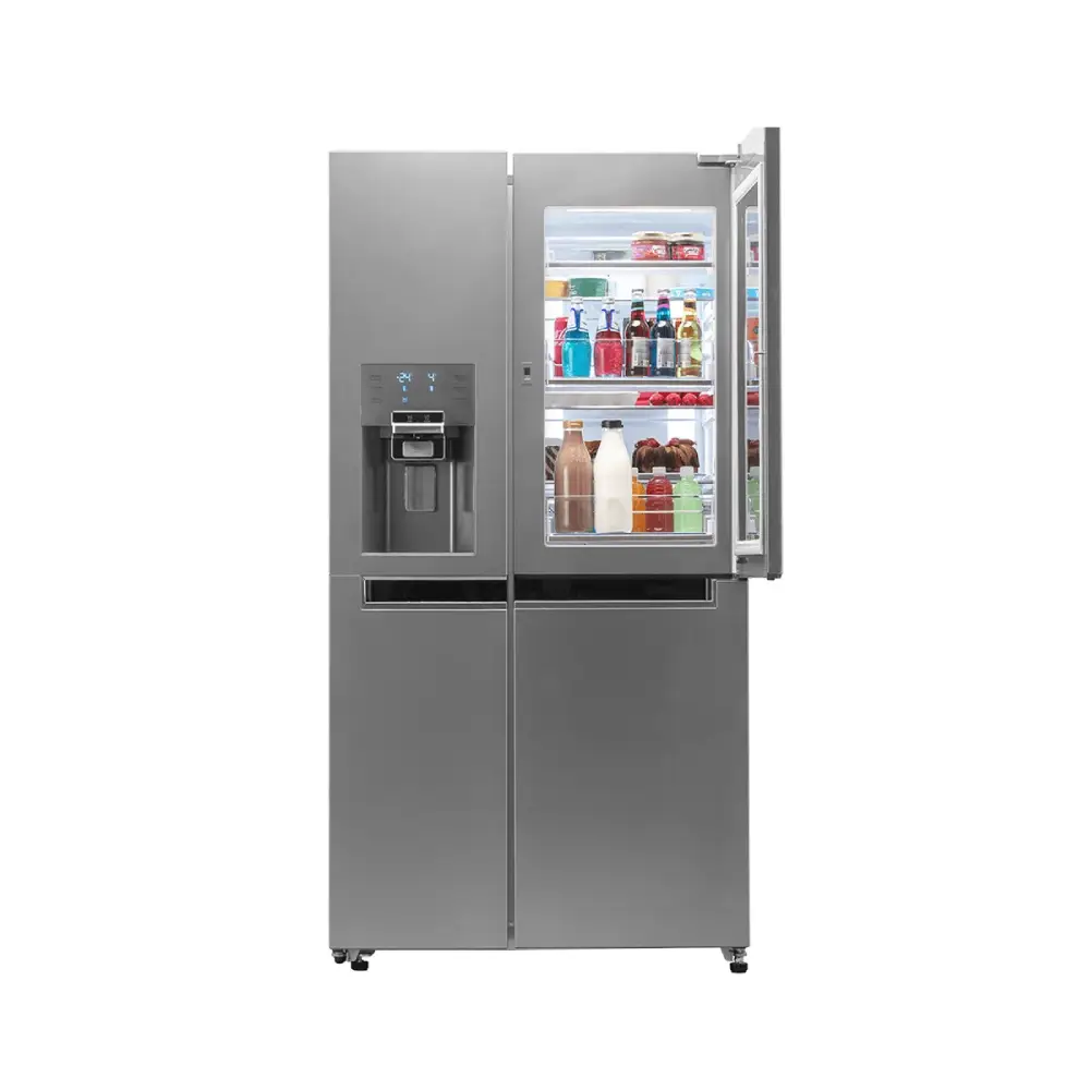 درب سوم Light Door To Fresh Land در یخچالهای ساید بای ساید یک ویژگی طراحی خاص است که در برخی مدلهای جدید برندهای معتبر مانند ساید بای ساید دوو سری پرایم دیده میشود. این درب به عنوان درب بار یا درب دوم روی درب اصلی نیز شناخته میشود. این در امکان دسترسی به مواد غذایی پرمصرف مانند نوشیدنیها و لبنیات بدون نیاز به باز کردن درب اصلی یخچال فراهم می کند. با باز کردن درب کوچک، از خروج هوای سرد داخل این یخچال ساید بای ساید دوو جلوگیری شده و مصرف انرژی کاهش مییابد. چون درب اصلی کمتر باز میشود، نوسانات دمایی داخل یخچال کاهش یافته و مواد غذایی مدت بیشتری تازه میمانند. برای باز کردن، یک دکمه مخفی یا مکانیزم خاصی روی دستگیره تعبیه شده که با فشار دادن آن، بخش Light Door باز شده و دسترسی به مواد غذایی سریعتر انجام میشود. این ویژگی یکی از امکانات پیشرفته در یخچالهای ساید بای ساید است که هم مصرف انرژی را بهینه میکند و هم کارایی و راحتی بیشتری برای کاربران به همراه دارد.