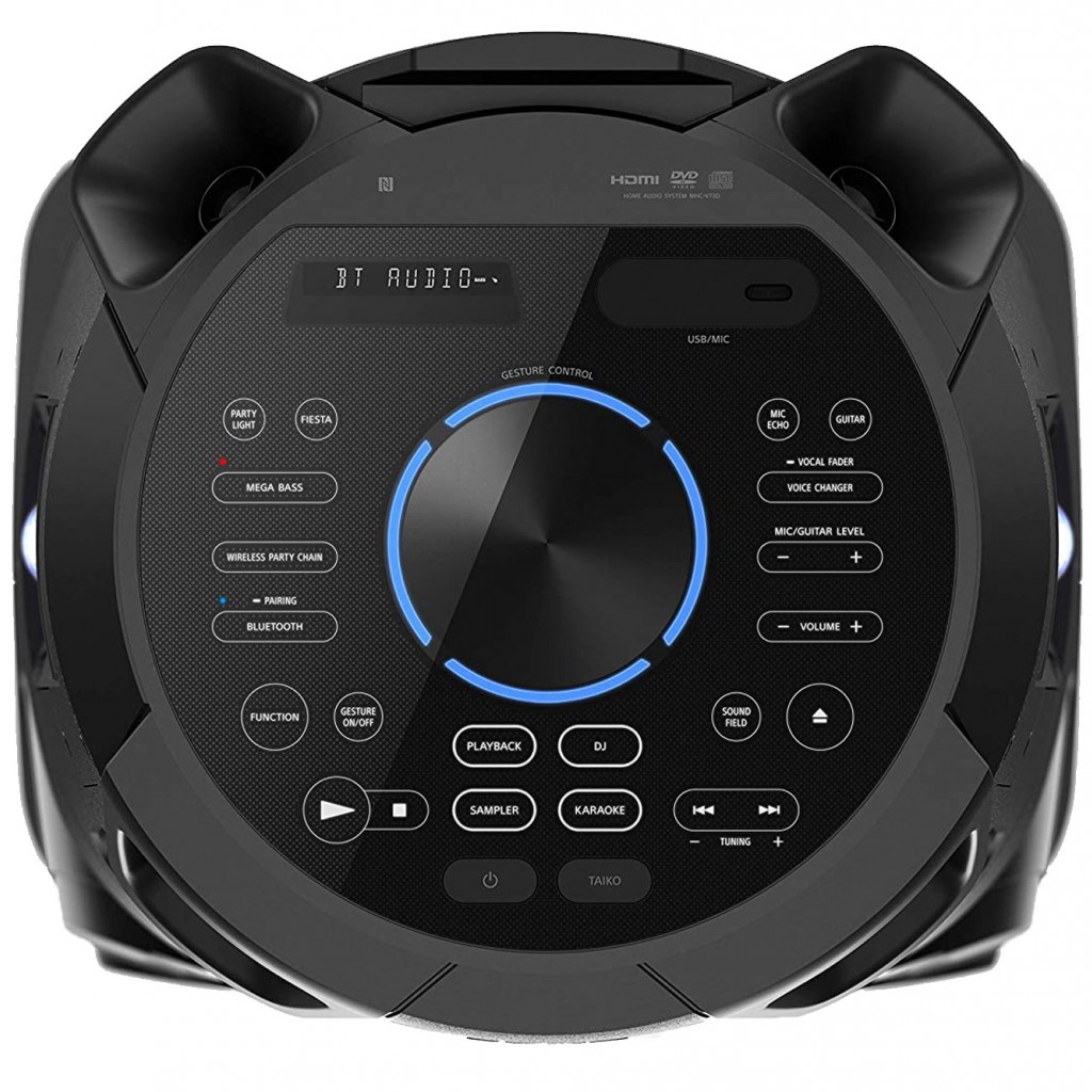 این پخشکننده دارای اتصال بلوتوث است. با این فناوری میتواند به هر دستگاهی که دارای بلوتوث است متصل شد و فایلهای صوتی آن را پخش کنیم. بلوتوث میتواند حاشیه کاری و اتصال آن را گستردهتر و کارایی آن را بالاتر و سادهتر کند. توانی که میتواند از خود برای صدا خروج دهد 1400 وات است. در این پخشکننده قابلیت تنظیم بیس قرار دادهاند که با آن میتوان بیس صدای در حال پخش را بهصورت دلخواه کم و زیاد کنیم. تعداد کانالهای این دستگاه دو عدد است. درایو نوری در این دستگاه شامل DVD-R، DVD-RW، DVD+R ، DVD+RW ، Audio CD، CD-R/CD-RW، DVD و CD است. با داشتن درایو نوری برای خواندن دی وی دیهای صوتی و تصویری و خروجی با کیفیت HDMI - (HIGH DEFENITION MULTIMEDIA INTERFACE( تصاویر را با بالاترین کیفیت ممکن برای دستگاههای نمایشی ارسال کند و حتی با استفاده از تکنولوژی ARC - AUDIO RETURN CHANNEL - صدای تلویزیون را در سیستم صوتی V43D دریافت کنید. مدل MHC-V43D دارای یک جفت ورودی صدای انالوگ است که برای اتصال باسیم دستگاههای مختلف نظیر لپ تاپ و دیچی یا حتی دستگاههای قدیمی تر نیاز کاربران را برطرف کند. MHC-V73D دارای 1 عدد ساب ووفر بوده که در پخش صدا میتوانند کارایی بسیار شگفتی داشته و کیفیت صدای در حال پخش را به صورت چشمگیری بالا ببرند. برای اینکه جلوه و زیباییای به این دستگاه در هنگام فعالیت بدهند، برای آن رقص نور قرار دادهاند. پخش کننده خانگی سونی مدل MHC-V73D از نظر کیفیت عمومی پخش صدا خروجی با کیفیتی به شما ارائه میکند. این پخش کننده سونی کیفیت ساخت قابل قبولی دارد و میتوانید با خیال راحت از آن در مهمانیها و مجالس خود استفاده کنید.