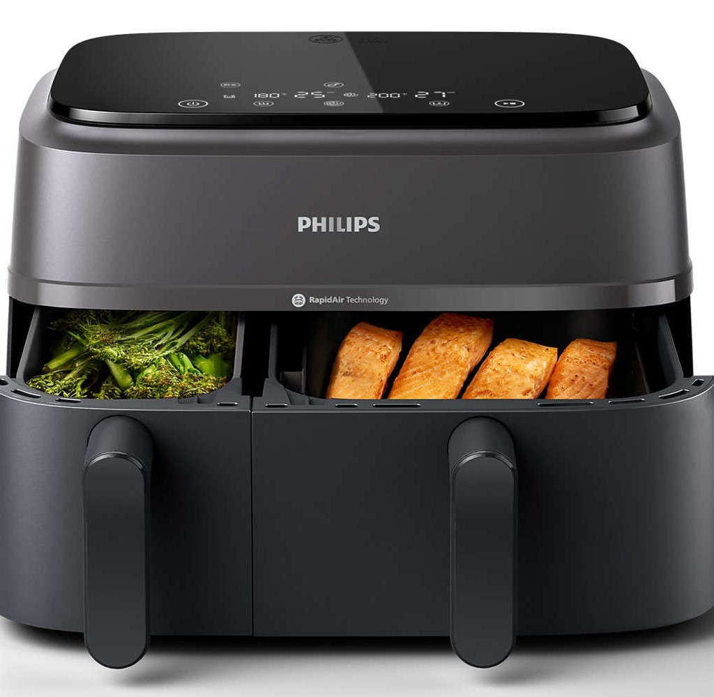 - دو محفظه جداگانه: امکان پخت دو نوع غذا با تنظیمات مختلف دما و زمان.