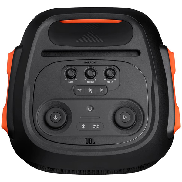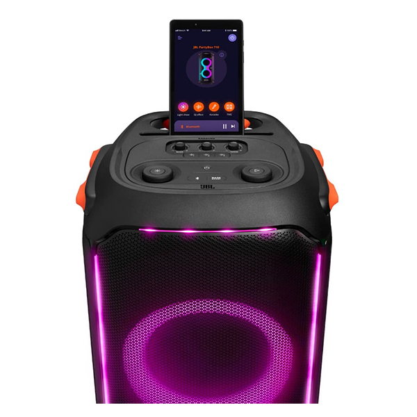 برند JBL که سال هاست که به عنوان یکی از برترین تولید کنندگان محصولات صوتی در دنیا فعالیت میکند توانسته است تا کنون قوی ترین، دقیق ترین و بهترین سیستمهای صوتی در جهان را تولید و عرضه کند تا با هدف طراحی و تولید محصولاتی هوشمند، بتواند گوی سبقت را از دیگر رقبا، برباید. از همین روست که محصولاتی کم نظیر و بی رقیب، همچون JBL PartyBox 710 را به بازار عرضه کرده است. اسپیکر JBL PartyBox 710 با 800 وات قدرت و سبکهای نورپردازی مناسب، میتواند موسیقیهای شما را در کیفیتی عالی، ارائه نماید. میتوانید نور را با ضربات موسیقی هماهنگ کنید تا فضایی زیبا همراه با صوتی دلنشین داشته باشید. این محصول زیبا از برند جی بی ال، دارای ساختاری مستحکم است که باعث میشود دوام و مقاومت بسیار خوبی در شرایط مختلف داشته باشد. این اسپیکر با استفاده از دو توییتر 69.8 میلی متری با کمترین میزان نویز و دو درایور 203 میلی متری با حساسیت بالا، خروجی قدرتمند و شگفت انگیز 800 وات را ارائه میدهد که باعث میشود، صوتی در کیفیت بالا و تعادل کامل در تمامی سطحهای صدا، Low، Mid، High را دریافت کنید. این اسپیکر JBL، از درایورهایی با حساسیت بالا برخوردار است تا بتوانید صدایی قدرتمند و باسهای عمیق را داشته باشید. ی توان گفت که JBL Partybox 710 یک اسپیکر بزرگ و البته قدرتمند است و با توجه به گواهینامه بین المللی IPX4 از مقاومت و دوام خوبی برخوردار است. به طوری که در برابر پاشش آب مقاومت میکند و آسیبی متوجه آن نخواهد شد. این اسپیکر جی بی ال، مجهز به دسته و چرخهای مقاوم است تا بتوانید آن را به راحتی حمل نمایید. بنابراین در فضای باز، میتوانید همراه دوستان و خانواده خود، از آهنگهای دلخواه خود لذت ببرید. اتصال بلوتوثی JBL PartyBox 710، دارای قابلیت اتصال با سیم و بی سیم است که اتصال بی سیم به وسیله بلوتوث و اتصال سیمی نیز به وسیله رابط 3.5 میلی متری AUX خواهد بود. همچنین جی بی ال پارتی باکس 710 مجهز به ورودیهای گیتار و میکروفون است. به راحتی میتوانید برای ایجاد سرگرمیهای خود و افزایش هیجان در میهمانیهای خود، از این اتصالات استفاده کرده و در موسیقیهای بی نظیر و شفاف آن، غوطه ور شوید.