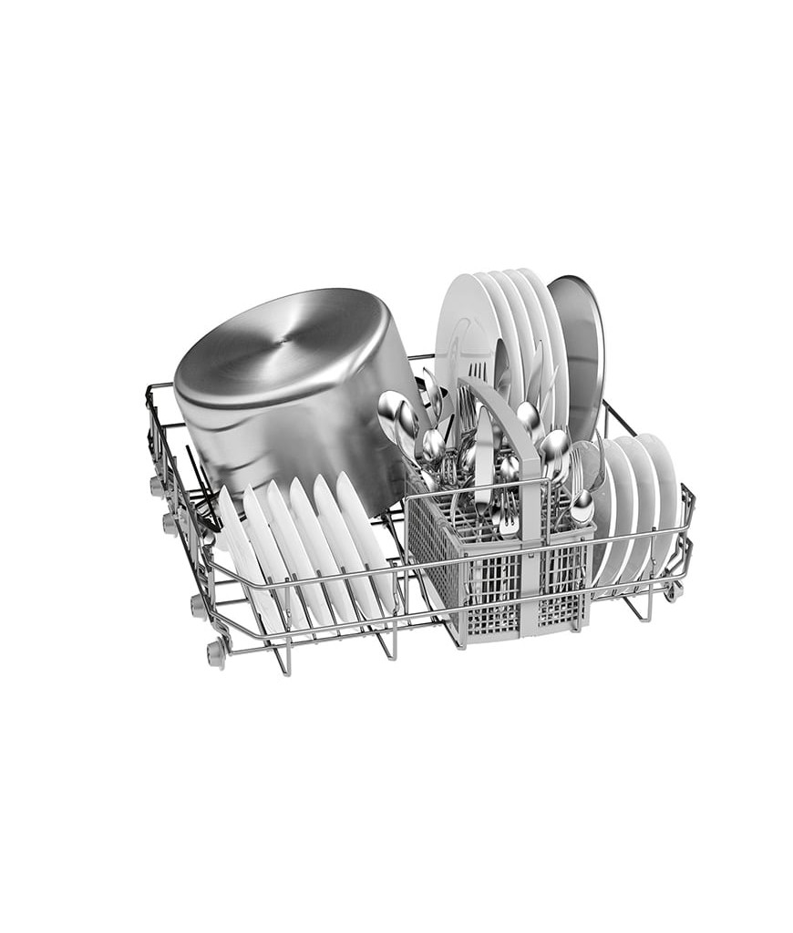 در این ماشین ظرفشویی بوش دو سبد قرار گرفته شده که به راحتی همه ظروف کوچک و بزرگ مثل قابلمه و بشقاب و کارد و چنگال قرار میگیرد و در صورتی که ارتفاع ظروف زیاد باشد با تنظیم ارتفاع به سادگی ظروف بلند و قابلمههای بزرگ جاسازی میشوند.