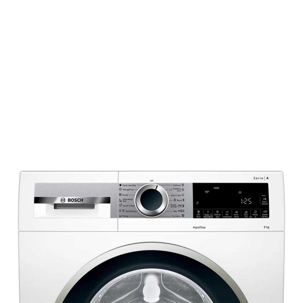 ماشین لباسشویی بوش مدل دارای سرعت چرخش درام 1200 دور در دقیقه (Rpm) است. ماشین لباسشویی بوش WGA242X0 یکی از بهترین و با کیفیت ترین محصولات سری 4 کمپانی بوش است. لباسشویی بوش 242X0 از ظرفیت دیگ 9 کیلوگرمی برخوردار است، که جوابگوی نیازهای خانه میباشد. ماشین لباسشویی بوش 9 کیلوگرم و به رنگ سفید با طراحی منحصر بفرد و جزو سری 4 لباسشوییهای بوش میباشد. موتور ماشین لباسشویی بوش از نوع اکوسایلنس ECO Silence بوده و در طی سیکل شستشو تنها صدای آب را خواهید شنید. این محصول از طراحی زیبا ومدرنی برخوردار است که بسیار نوآورانه طراحی شده، به لطف نوع طراحی که شیارهایی در کنارهها وجود دارد که باعث کاهش لرزش و تکان خوردن لباسـشویی بوش 9 کیلویی میشود. لباسشویی WGA242X0 دارای سرعت چرخش موتور 1200 دور در دقیقه میباشد. برخورداری از موتور Eco Silence از دیگر امکانات برجسته این لباسـشویی پرطرفدار است. رده انرژی +++A در این لباسشویی باعث کاهش هزینه ها شده، درب لباسشویی 242X0 بصورت دوجداره است. اصطحلاک و صدا در ماشین لباسشویی 9 کیلویی بوش 242X0 بواسطه موتور قدرتمند بسیار کم خواهد بود.